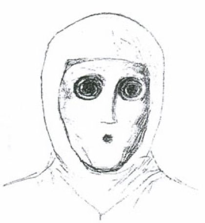 Abductee Cao Gong's drawing of the male extraterrestrial. Original Source: Zhang Jingping's blog. http://blog.sina.com.cn. Note: that blog as of 2025 is inoperative. This image may now be found at https://www.staradio.com.hk/programs/visitors-ep45/ (accessed June 14, 2025).