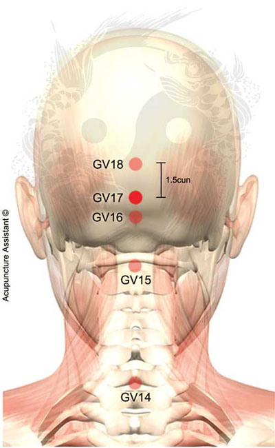 8. Then to the base of the neck at GV-14, Dazhui, the "Big Hammer."